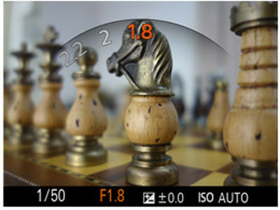このリングを回すと、液晶画面にアーチ状のパラメーターが表示され
