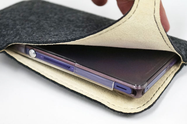 ●Xperia Zをハンドメイドフェルトケースに収める。