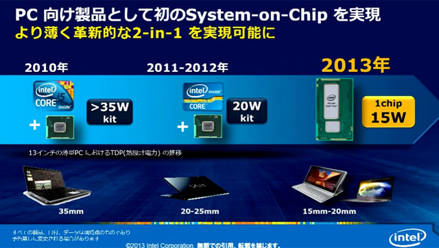 第4世代Coreプロセッサーでは1チップで15WのTDP