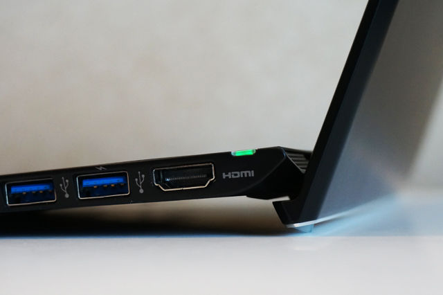 本体右側面に、HDMI出力、USB 3.0×2(1つは給電対応)、ヘッドホン・マイク端子
