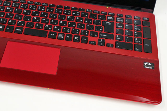 底面やタッチパッド、キーボード部分はマットなレッドカラーとなる。