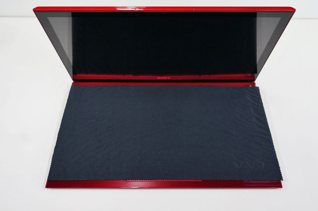 ディスプレイを開くと、VAIOロゴのはいったブラックのクロスが敷いてある。