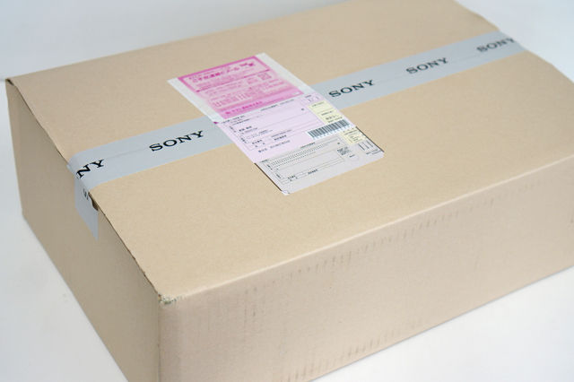 SONYロゴのあるグレーのテープが貼ってあるパッケージが