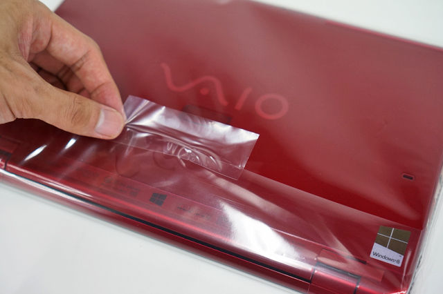 VAIOを持ち上げて、透明のビニールから取り出す。