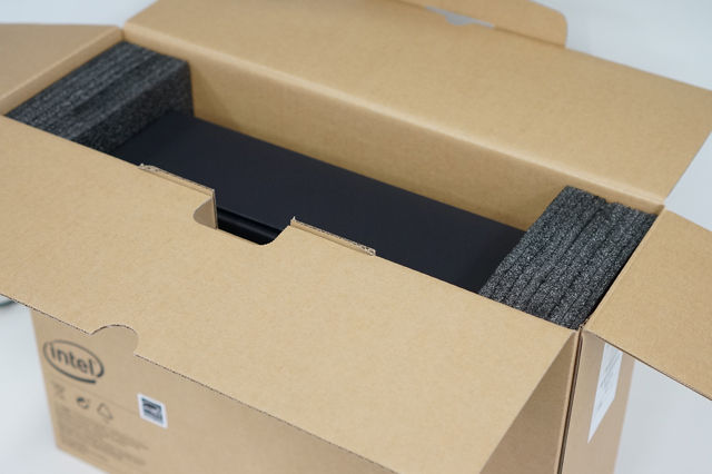 開けてみると、中にクッション材でガードされたブラックの箱が見える。