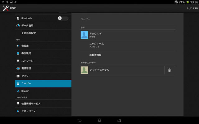 もしくはXperia Tablet Z端末本体から行える。