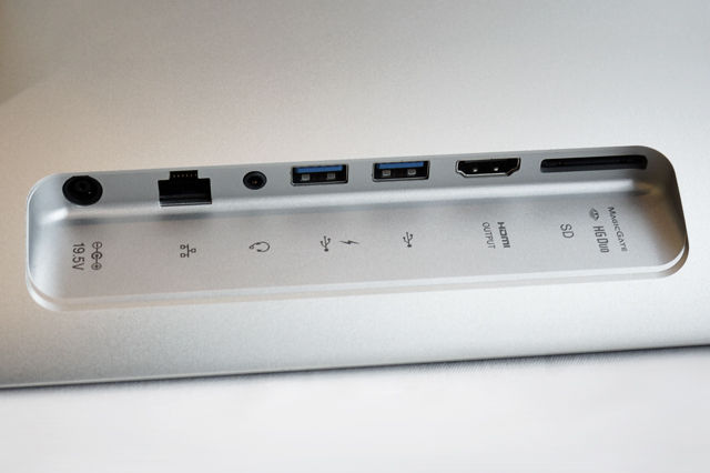SDカード/メモリースティックスロット、HDMI出力、USB 3.0×2、音声出力、LAN端子、電源