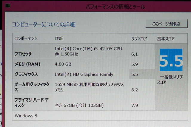 Windows 8にあるベンチマークの「Windows エクスペリエンス インデックス」。