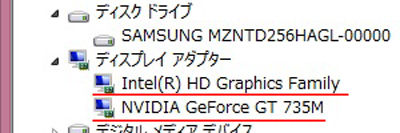 Intel HD Graphics 4400(「NVIDIA GeForce GT 735M)