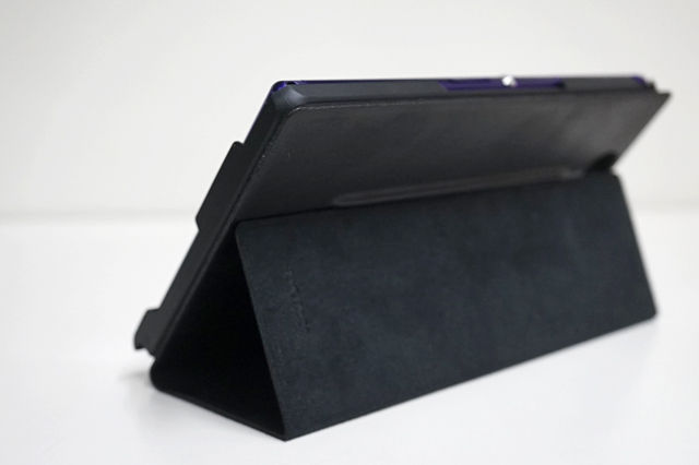 ケースを反対側に折りたたむと、卓上スタンドにもできる。