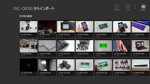 ここから画像を選択して画像をVAIOに取り込める。