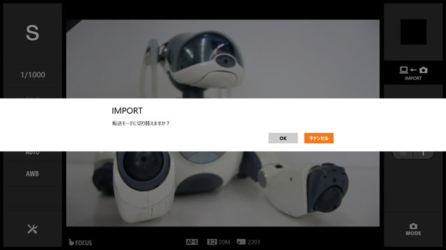 「IMPORT」をタップすると、転送モードに切り替えて