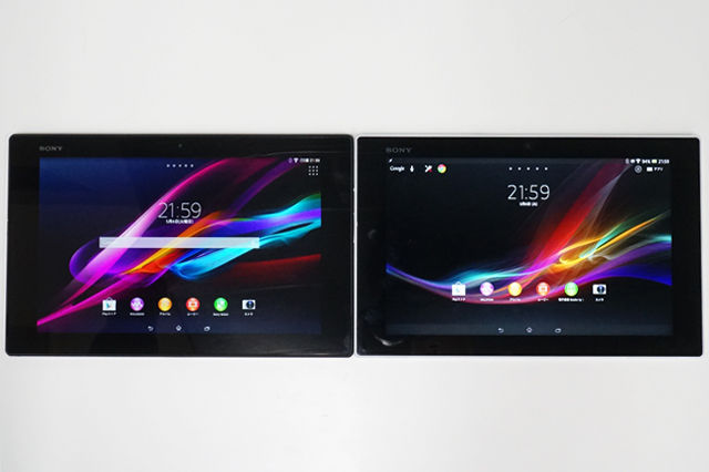 左がXperia Z2 Tablet(ブラック)、右がXperia Tablet Z(ホワイト)。