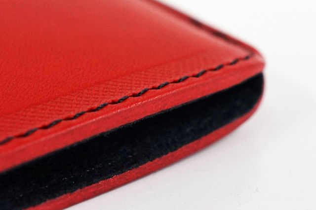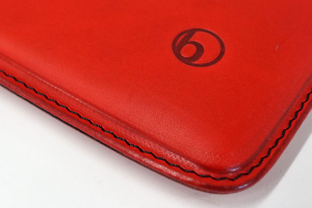 ケースの周囲に赤いステッチと、