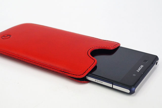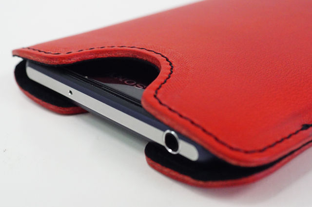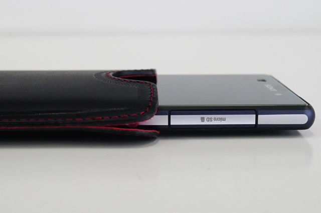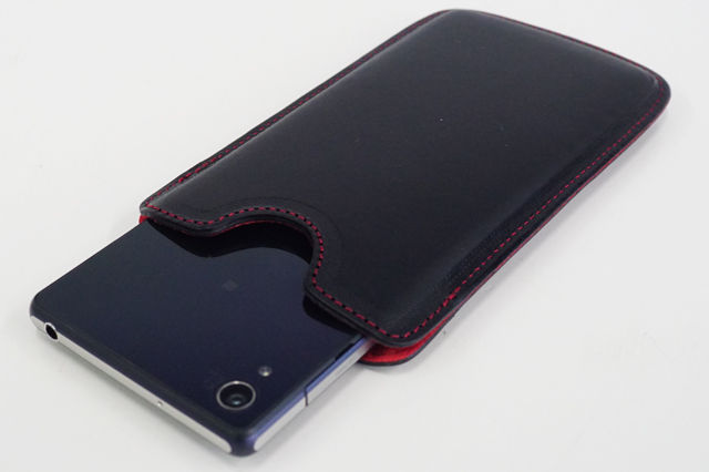 「Xperia Z2」をレザーケースに入れると、