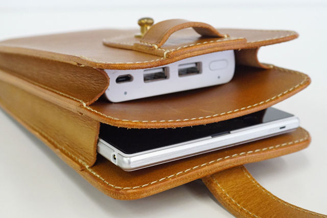 かなりの重厚感のあるスマートフォンケースに仕上がっている。