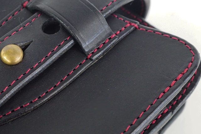 厚みのある本革の周囲に均等にかつ非常に正確にステッチを縫いこみ